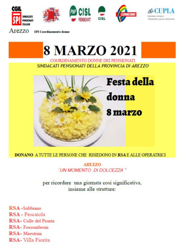 la locandina dell'iniziativa Unitaria dei Coorrdinamenti Donne dei Pensionati della provicia di Arezzo;
